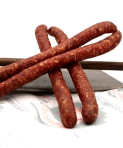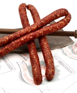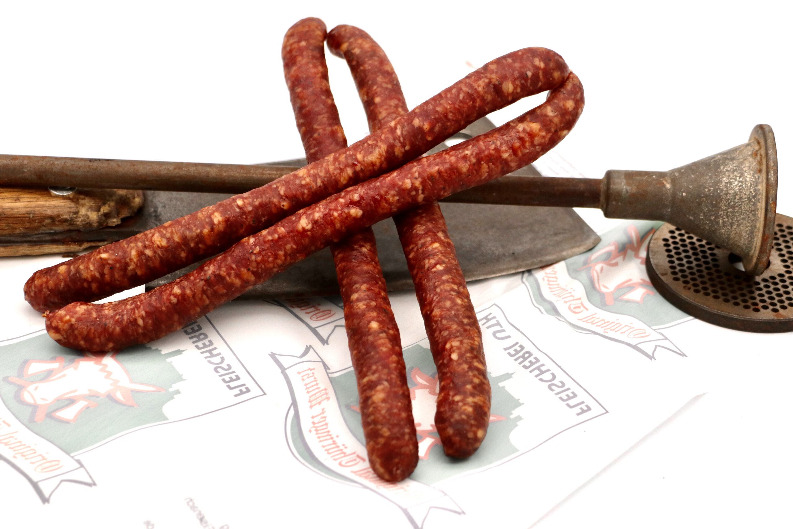 50% Schweinefleisch, Speck, 50% Rindfleisch, Siede-Nitrit-Pökelsalz (Konservierungsstoff), Gewürze, Dextrose, Starterkulturen, Schafsaitling, Buchenrauch