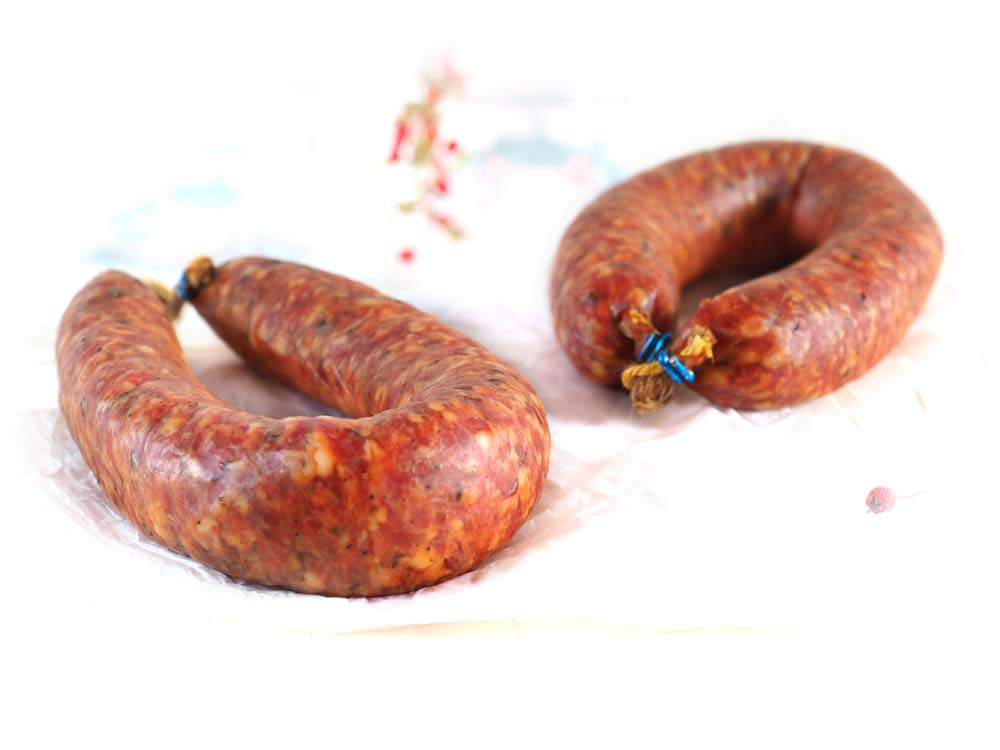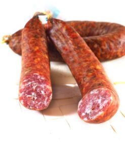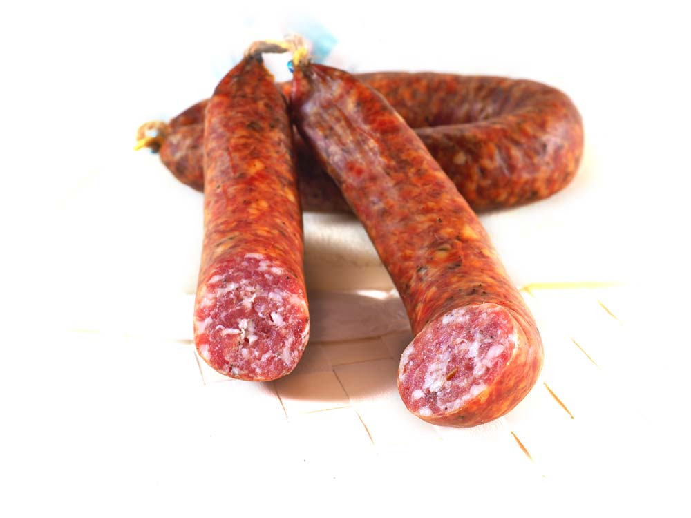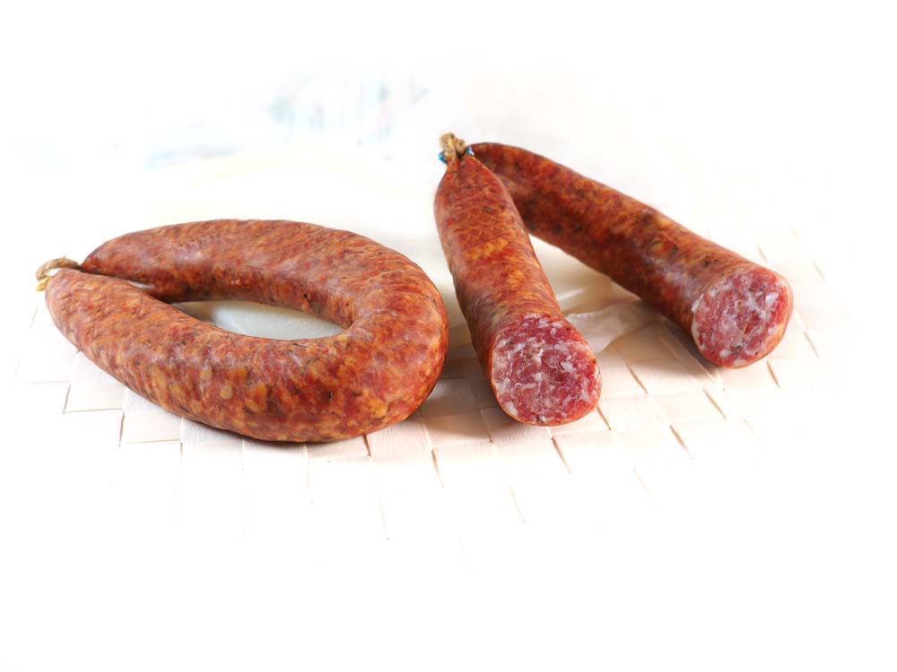 85% Schweinefleisch, Speck, Siede-Nitrit-Pökelsalz (Konservierungsstoff), Gewürze (Kümmel ganz), Dextrose, Starterkulturen, Schweinedarm, Buchenrauch