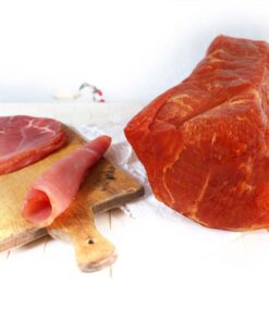 Schweinelachsfleisch, Siede-Nitrit-Pökelsalz, Antioxidationsmittel: E301, Dextrose, Buchenrauch