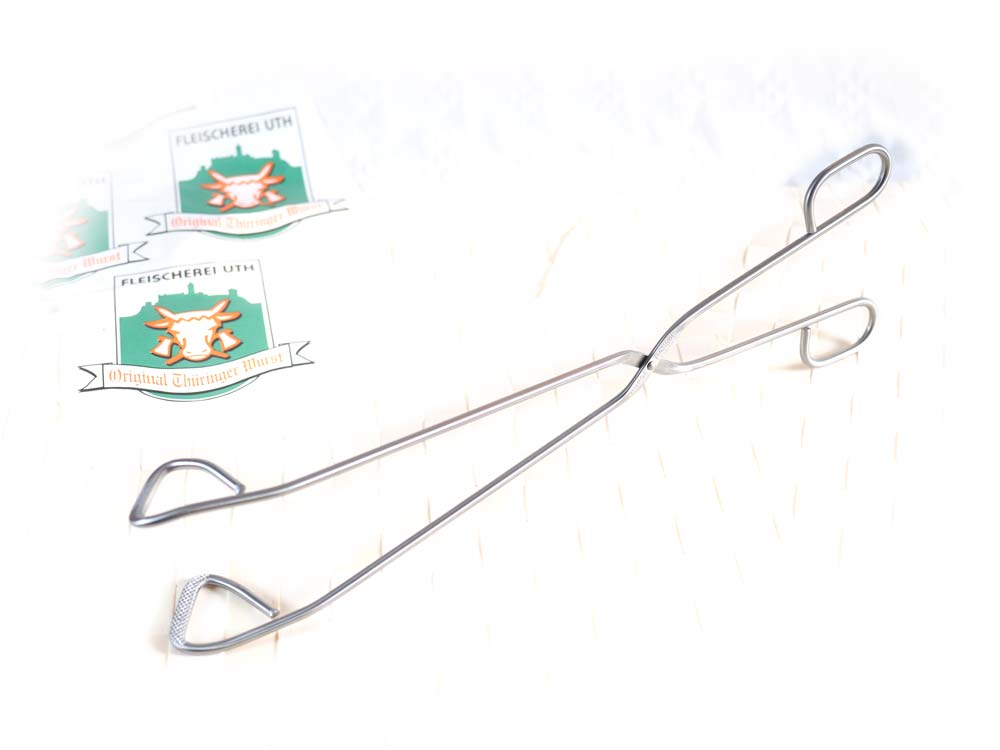 Die THÜROS Grillzange aus Edelstahl – extra lang 380mm.